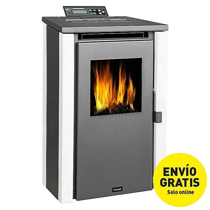 La estufa de pellets Lake 7 destaca por ser un medio de calefacción limpio y económico. El modelo de aire es ecológico y eficiente, ya que reparte el calor por la estancia en la que se encuentra. Su combustible es el pellet, un material totalmente renovable fabricado a partir de residuos vegetales, con un alto poder calorífico y bajas emisiones de CO2. Dispone de un panel de control con pantalla LCD muy intuitivo y fácil de usar. Además, cuenta con encendido piezoeléctrico. Su instalación requiere salida de humos y enchufe. Se recomienda empezar la instalación de evacuación de humos con una T con registro para facilitar su limpieza.